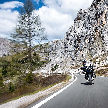 Motorradfahren in den Dolomiten - ganz einfach traumhaft! Jeder Pass ist anders, die Aussicht einfach atemberaubend, und die tosenden Wasserfälle, kristallklaren Seen, Almwiesen und magischen Gipfeln ein absolutes Highlight